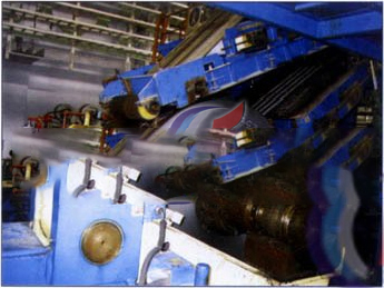| 磁力開(kāi)卷器工作原理 磁力開(kāi)卷器由皮帶、皮帶輪、 永久磁鐵(電磁鐵)等部分組成,永久磁鐵(電磁鐵)安裝于皮帶輪及無(wú)頭皮帶包圍的空間內(nèi),當(dāng)鋼卷帶開(kāi)卷時(shí),帶頭在磁鐵的磁力作用下,隨輸送帶順暢通過(guò),確保開(kāi)卷機(jī)鋼卷頭部順利穿帶。 |