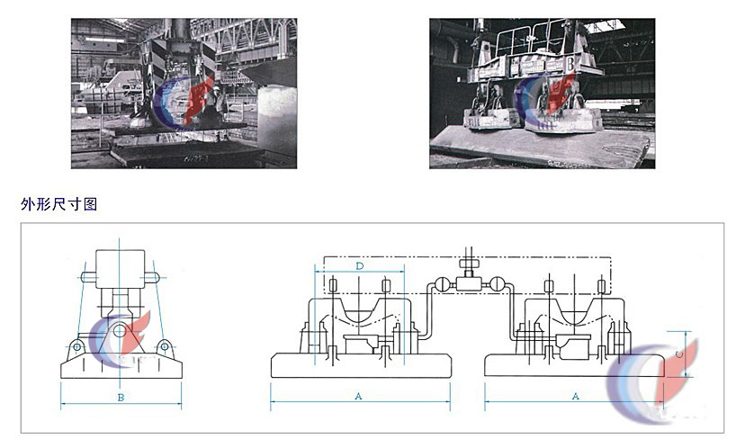 吊運(yùn)和翻轉(zhuǎn)板坯兼用的電磁鐵,適合于板坯上、下表面的檢查和精整時(shí)的翻轉(zhuǎn)作業(yè)用。翻轉(zhuǎn)作業(yè)既快、又好又安全。 特點(diǎn): 1、磁極結(jié)構(gòu)獨(dú)特,為翻轉(zhuǎn)板坯而特殊設(shè)計(jì)。能保證準(zhǔn)確而輕易地翻轉(zhuǎn)板坯。 2、當(dāng)使用導(dǎo)向柱的